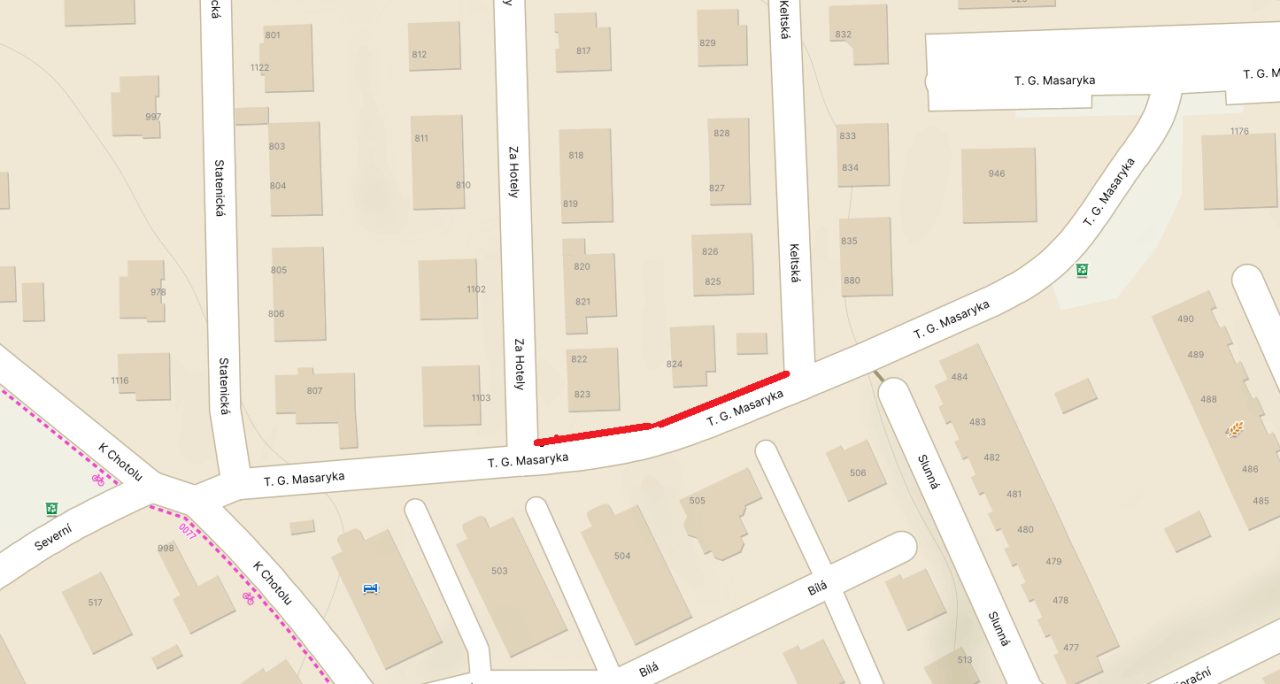 V termínu 4.–5. března (úterý a středa) bude tedy omezen průjezd ulicí T. G. M. v úseku mezi ulicemi Keltská a Za Hotely.