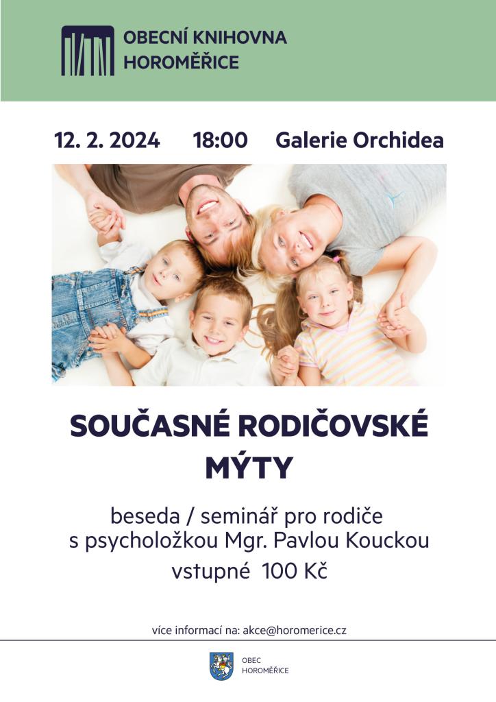 SOUČASNÉ RODIČOVSKÉ MÝTY - Mgr. Pavla Koucká, pondělí 12. 2., 18:00 hod., Galerie Orchidea (nad poštou)