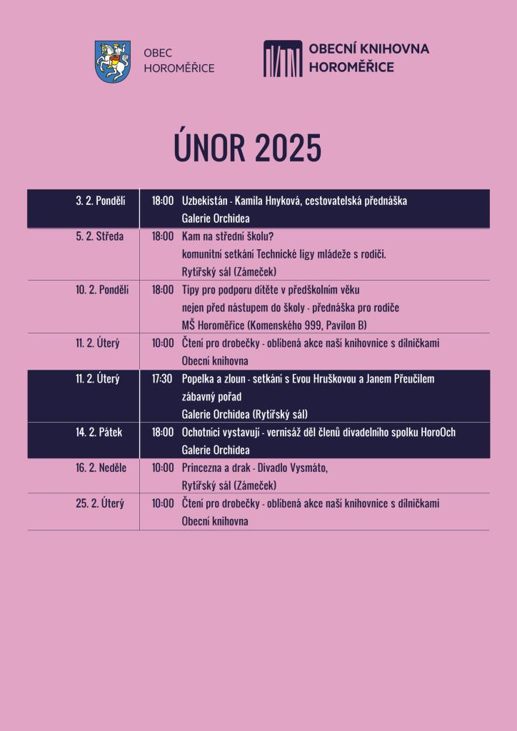 chtěli bychom Vám představit souhrnný program akcí, které se v Horoměřicích konají v měsíci únoru.