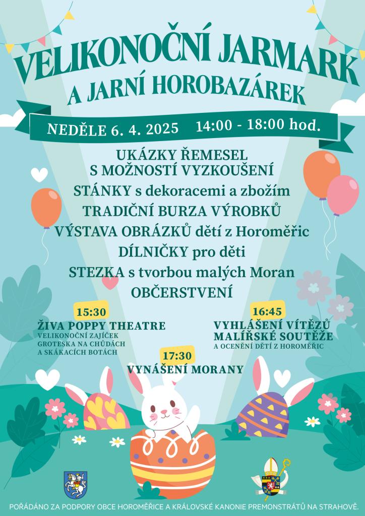 chtěli bychom Vás s radostí pozvat tuto neděli 6. dubna na Zámeček, kde bude opět po roce konat Velikonoční jarmark, který jsme letos obohatili o Jarní Horobazázek. Akce začíná ve 14:00 hod. a konec je naplánován na 18:00 hod.