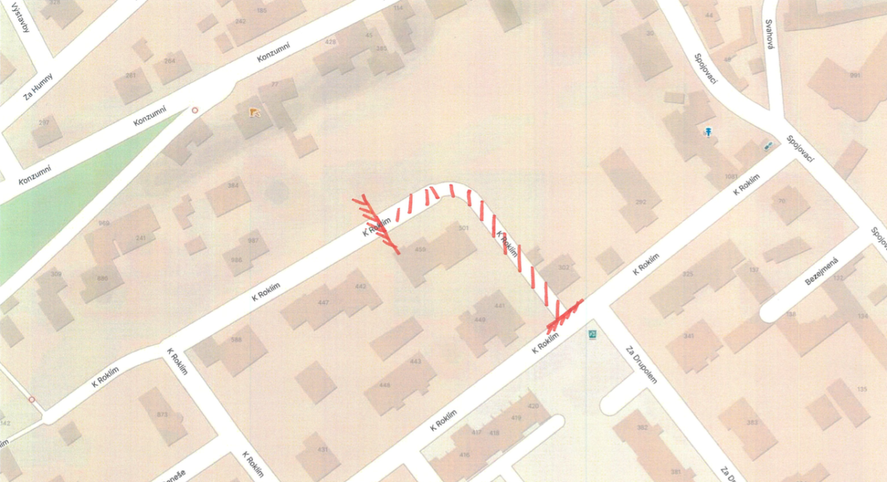 chtěli bychom Vás informovat, že v termínu od 23. do 31. října 2024 bude probíhat výměna stožárů včetně elektrických rozvodů veřejného osvětlení. Z důvodu výkopových prací v ulici K Roklím dojde k úplné uzavírce části komunikace od č.p. 441 až po lampu před č.p. 459.