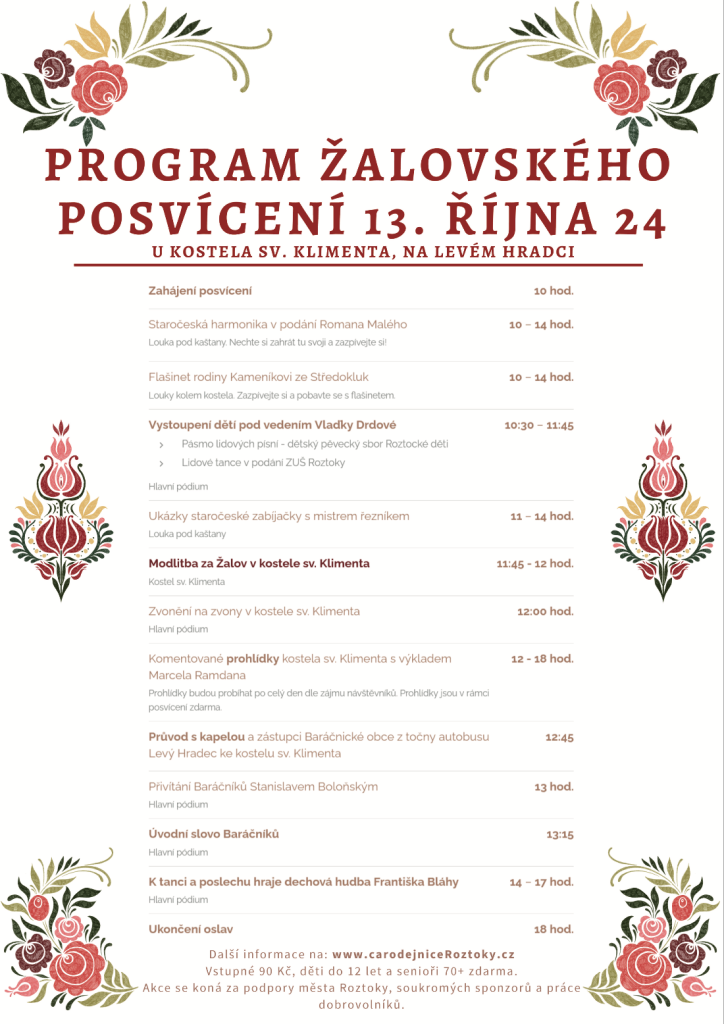 V Roztokách-Žalově se koná 3. ročník obnoveného Žalovského posvícení od 10:00 do 18:00 hod. na Levém Hradci u Kostela sv. Klimenta.