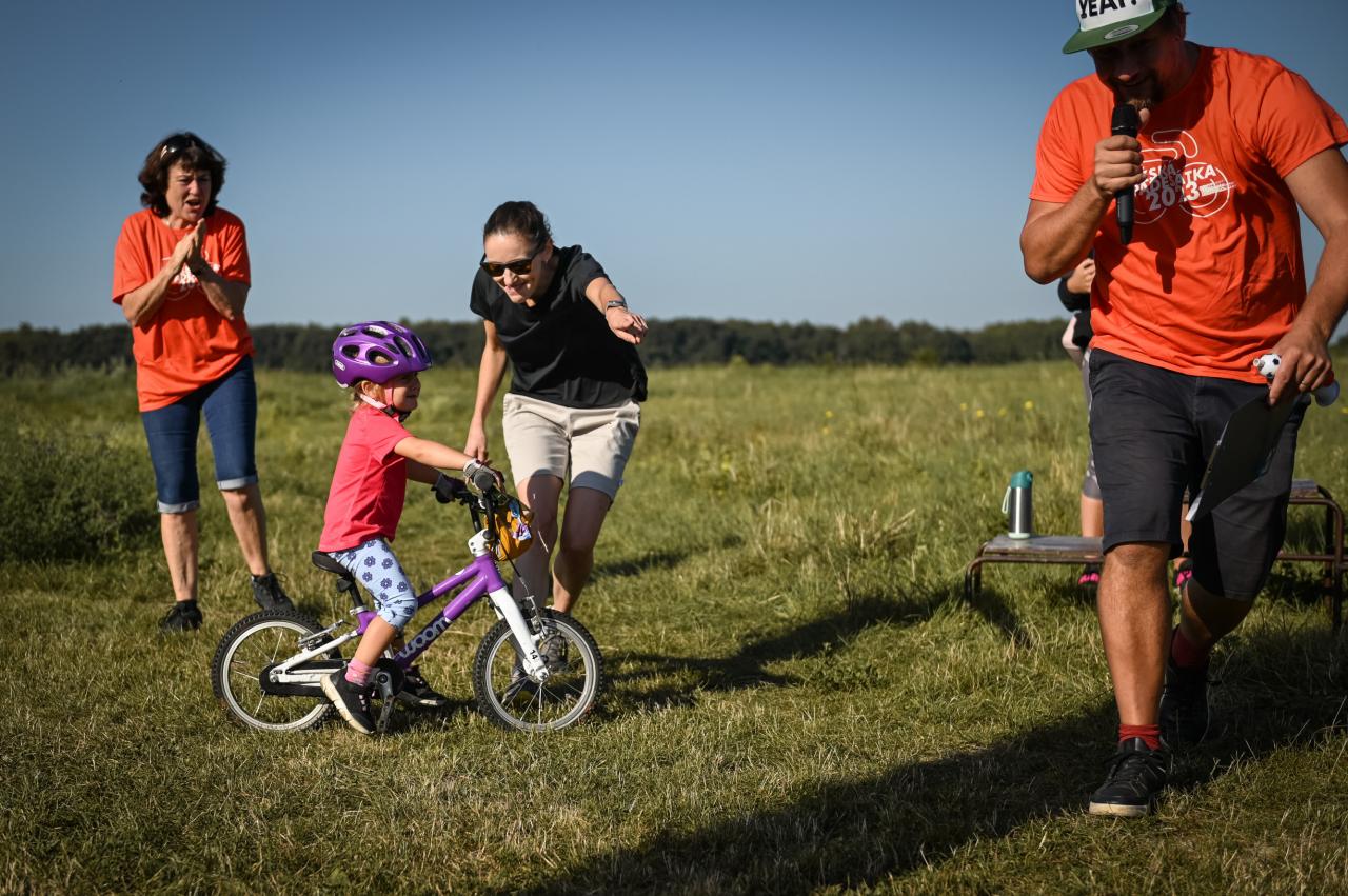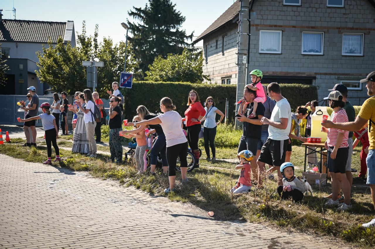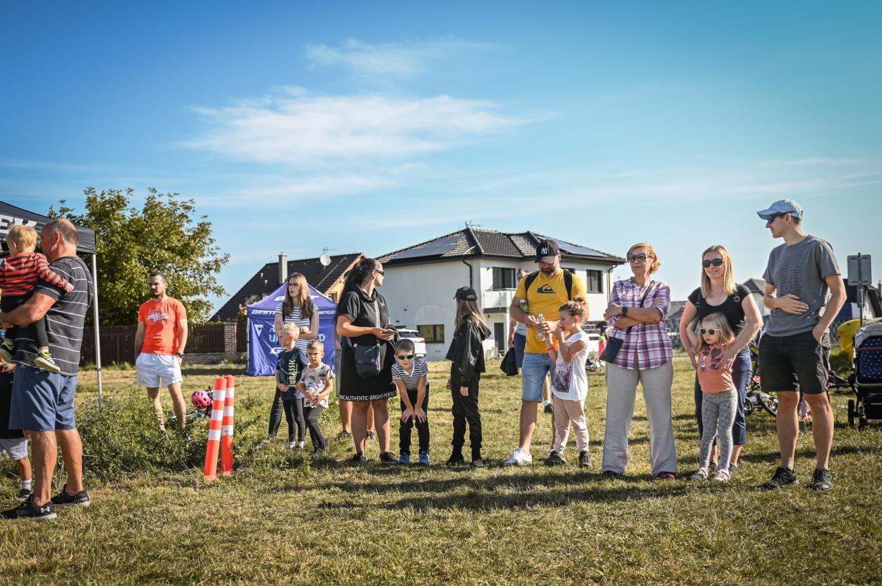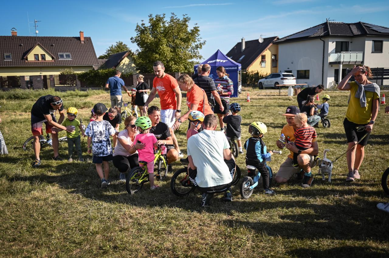 Na louce v ulici K Chotolu tak vyrostlo malé stanové městečko s registrací, lavičkami k odpočinku, a cykloservisem. Byl zde v trávě vysekán menší okruh se zatáčkami. A nejdůležitější byli samozřejmě účastníci - malé závodnice a malí závodníci se svými doprovody.
