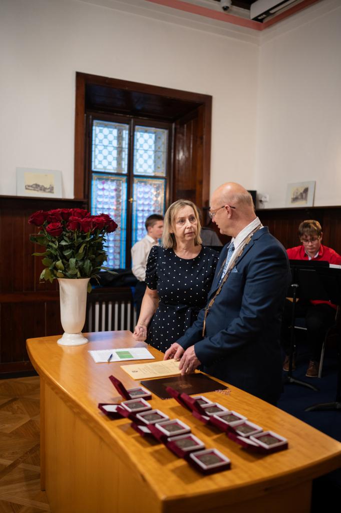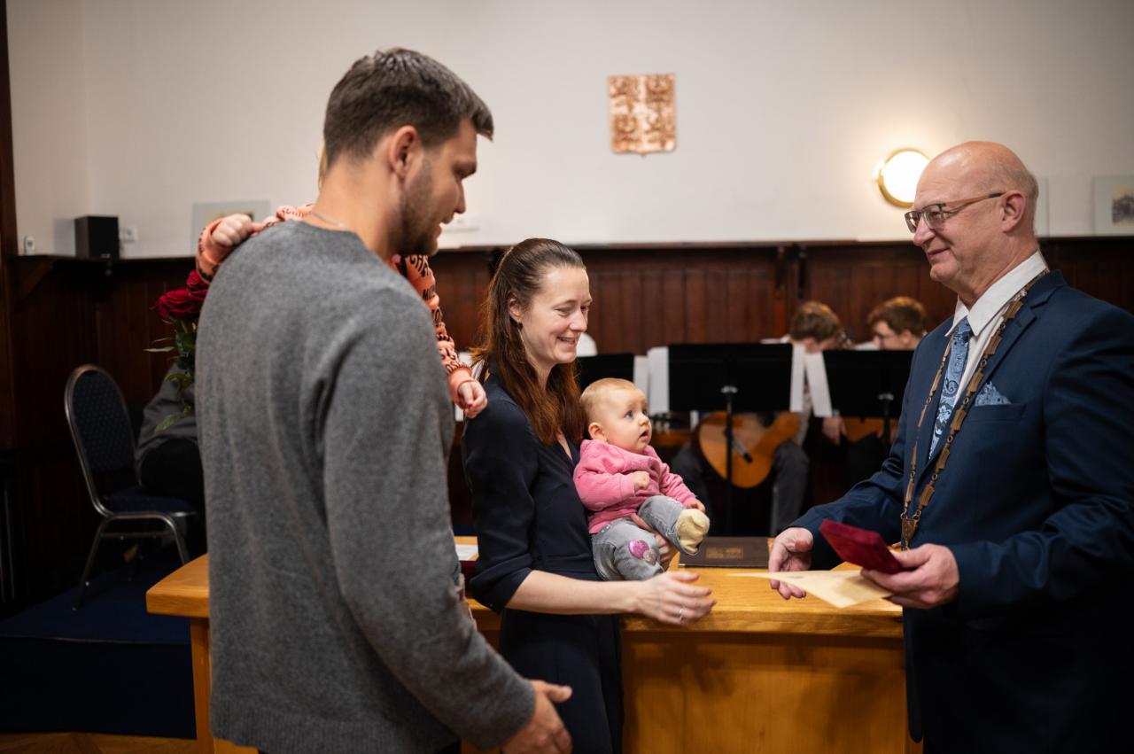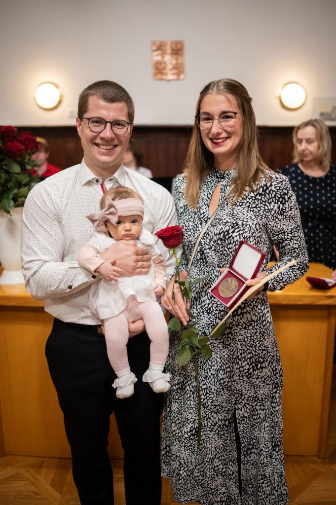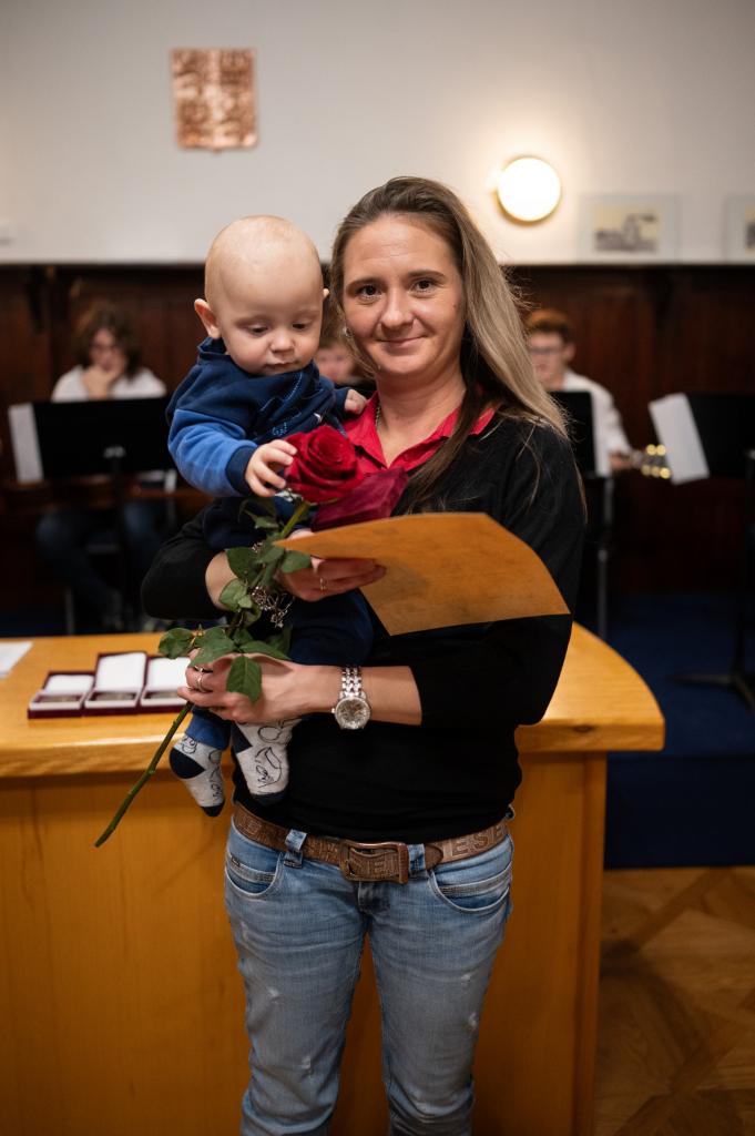 Naši malí občánci dostali z rukou pana starosty pamětní medaili s diplomem.