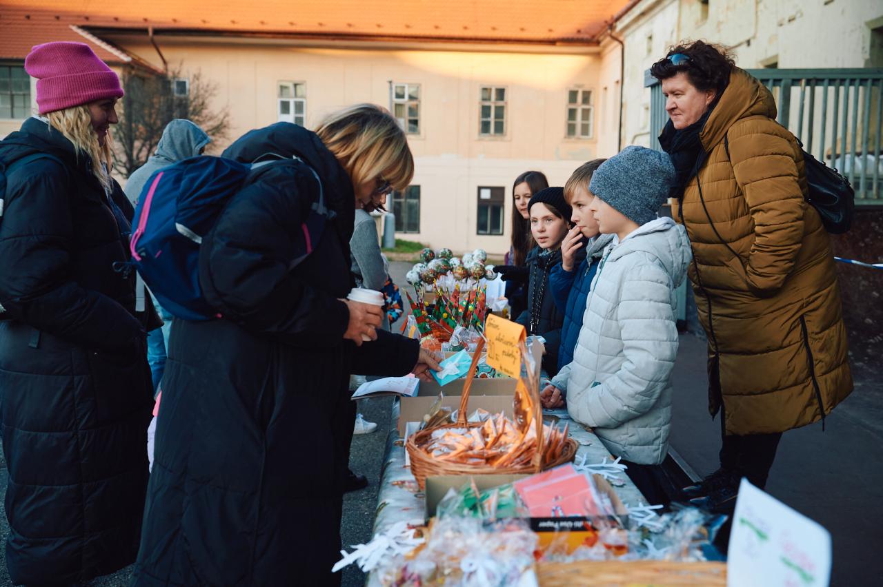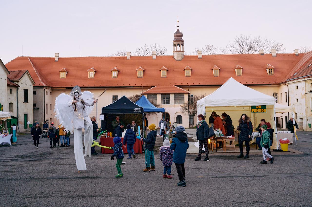 Na nádvoří si děti užívaly Vánoční stezku, kterou připravili zástupci školičky Happy Faces a místní hasiči (SDH Horoměřice). Děti plnily úkoly na osmi stanovištích a své putování za Ježíškem ukončily u hasičů.