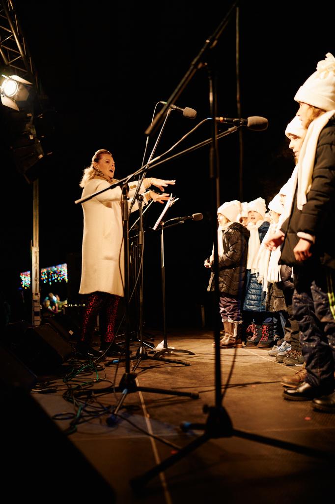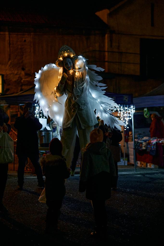 Po závěrečném projevu starosty Luboše Langera se všichni společně vydali za anděly na chůdách k parčíku před obecním úřadem. Zde za zpěvu koled andělé rozsvítili vánoční strom, který obci věnovala paní Libuše Kozovská. Návštěvníci si vychutnávali kouzelnou atmosféru, a po závěrečné fotografii u stromu se spokojení, byť možná trochu promrzlí, rozcházeli do svých domovů.