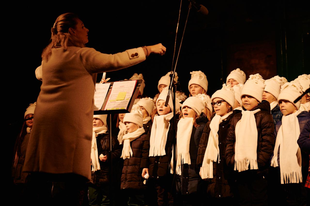 Vrcholem večera bylo vystoupení dětského sboru Škatulata z místní ZUŠ. Stálou sbormistryni Markétu Džunevu, která nemohla být přítomna, nahradila Jarmila Zedníková a děti pod jejím vedení zpívaly s plným nasazením. A možná i o to víc. Ke Škatulatům se připojil i jejich starší sbor Alaudae a společně zazpívali pásmo koled a balad.