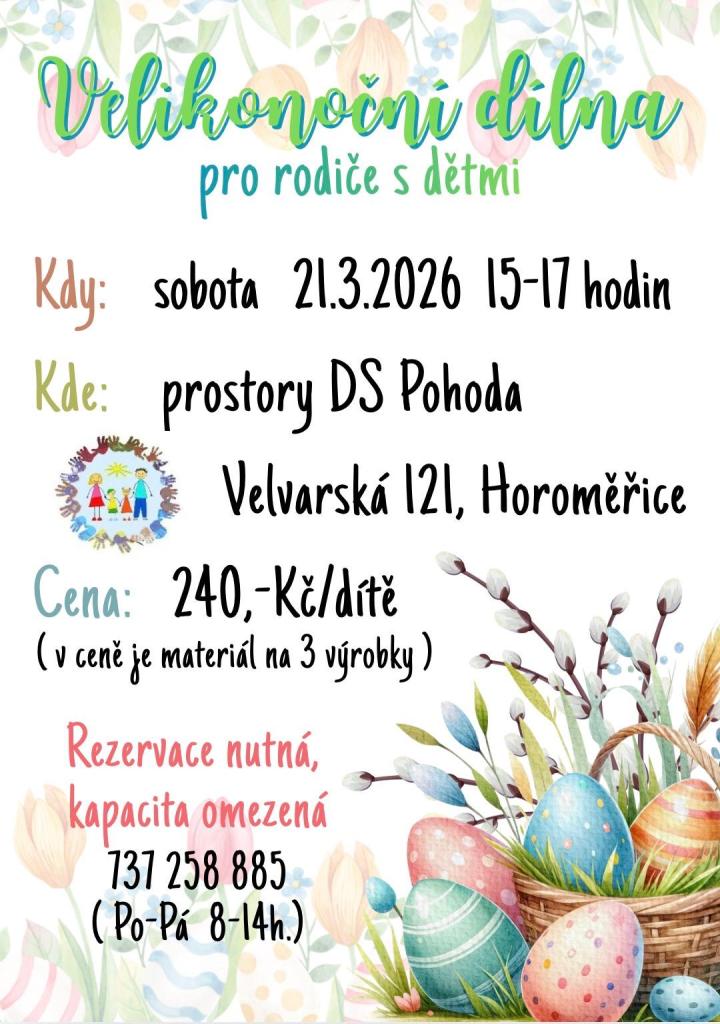 RK Pohoda pořádá oblíbenou Velikonoční dílnu pro rodiče s dětmi. První jarní den si můžete vyrobit symboly Velikonoc z různých materiálů.
